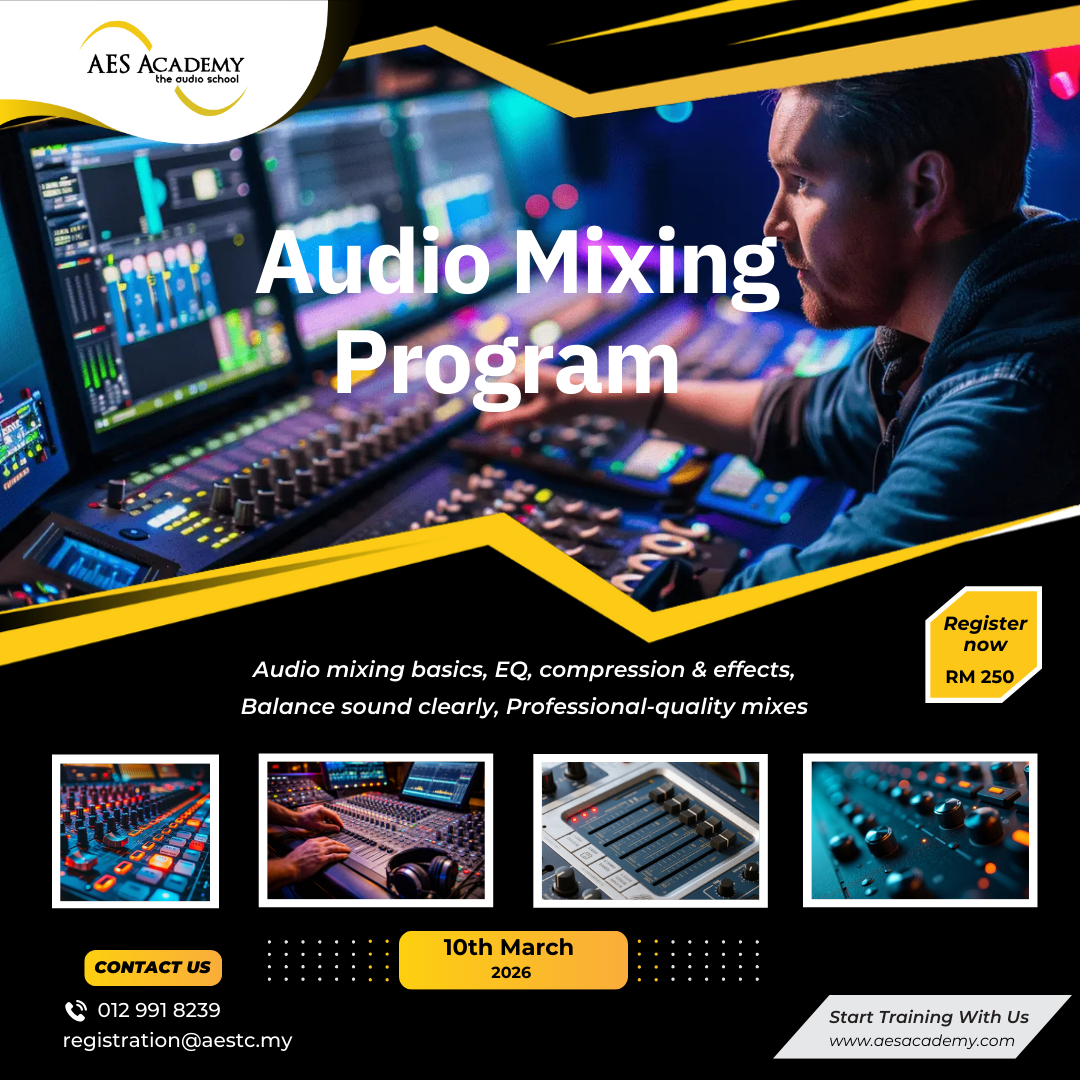 The Audio Mixing Program at AES Academy develops skilled and confident mixing engineers who can produce clean, balanced, and emotionally impactful mixes. The course covers the complete mixing process—from raw multitracks to polished, release-ready results—using industry-standard techniques applied in modern music production.